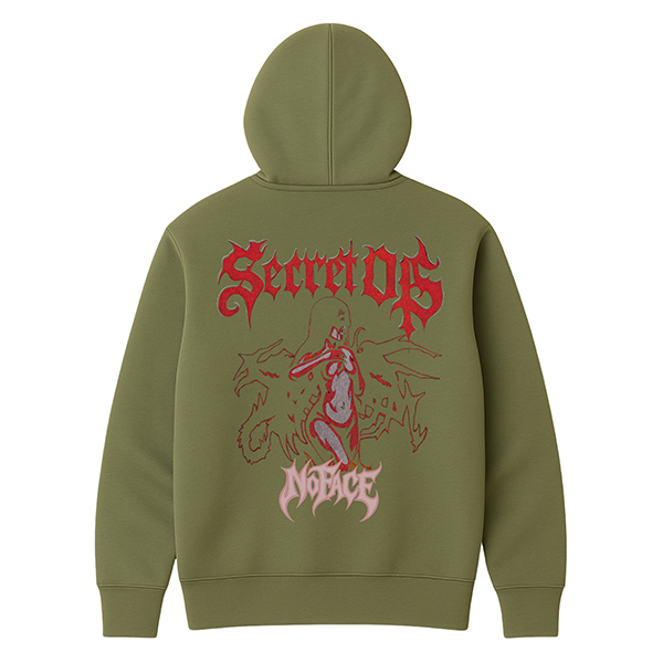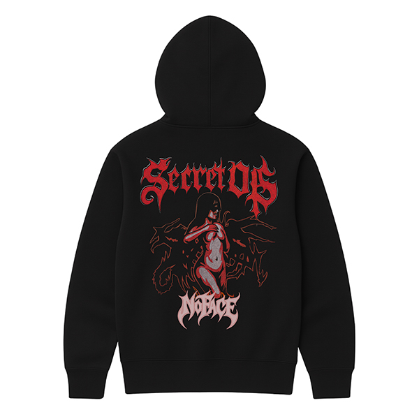 La sudadera Secret Ops Red negra con capucha de CUSTOMLAB es una pieza imprescindible para amantes del streetwear oscuro. El color negro del tejido potencia al máximo la serigrafía en rojo intenso de la familia Secret Ops Red, creando un contraste brutal. El diseño muestra el logo “Secret OPS” en la parte superior, la palabra “No Face” y la figura sin rostro rodeada de trazos agresivos que parecen fuego o energía en plena explosión.