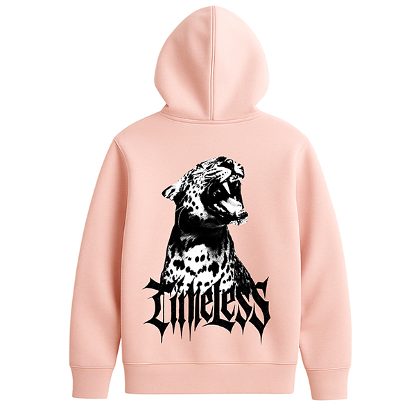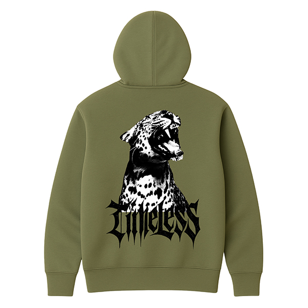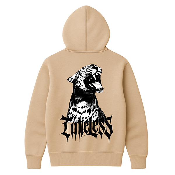 El contraste del blanco de la sudadera con las sombras negras del estampado genera una imagen impactante pero elegante. Es una prenda perfecta para quienes quieren un diseño fuerte sin renunciar a una base clara que ilumine el outfit. El concepto Timeless, unido a la imagen del jaguar, habla de fuerza, elegancia y estilo que resiste al paso del tiempo, algo que encaja con el espíritu de CUSTOMLAB y con la forma de vestir de muchos amantes del streetwear.