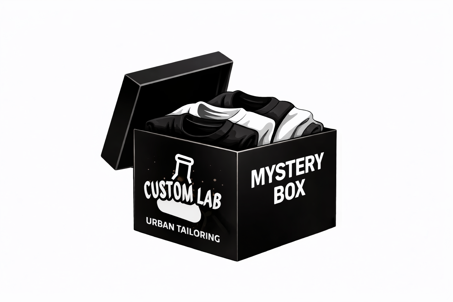 Mystery Box CUSTOMLAB: 5 camisetas sorpresa por 90€. Tú eliges la talla, nosotros elegimos los diseños. Máximo ahorro y puro streetwear.