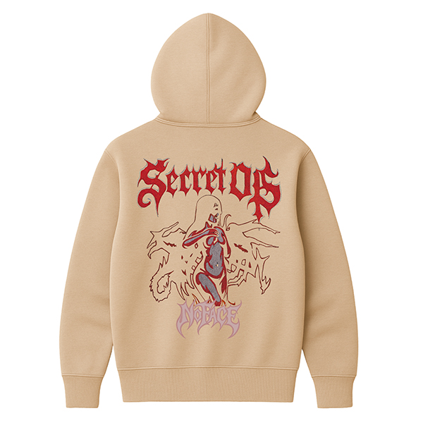 La sudadera Secret Ops Red negra con capucha de CUSTOMLAB es una pieza imprescindible para amantes del streetwear oscuro. El color negro del tejido potencia al máximo la serigrafía en rojo intenso de la familia Secret Ops Red, creando un contraste brutal. El diseño muestra el logo “Secret OPS” en la parte superior, la palabra “No Face” y la figura sin rostro rodeada de trazos agresivos que parecen fuego o energía en plena explosión.