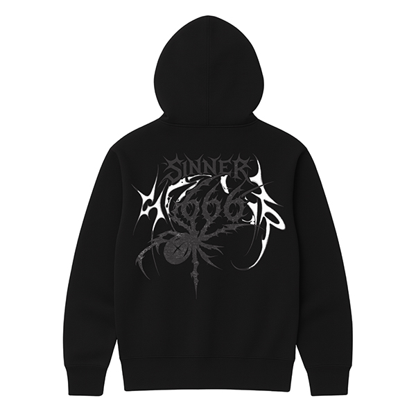 La sudadera Sinner con capucha de CUSTOMLAB es la prenda perfecta para quienes buscan una estética oscura sobre una base clara y versátil. En el frontal destaca una gran araña negra con patas afiladas, rodeada por un entramado de líneas y formas que recuerdan a grafismos tribales y metaleros. Por encima se lee el nombre SINNER en una tipografía agresiva, y en el centro aparece el número 666, completando una composición que se mueve entre el mundo del tatuaje, el metal y el arte gráfico contemporáneo.